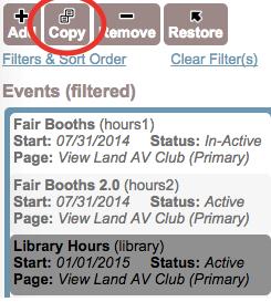 To copy an event, select the event you would like to re-use. Then, go above the list of your events and find the “Copy” button.